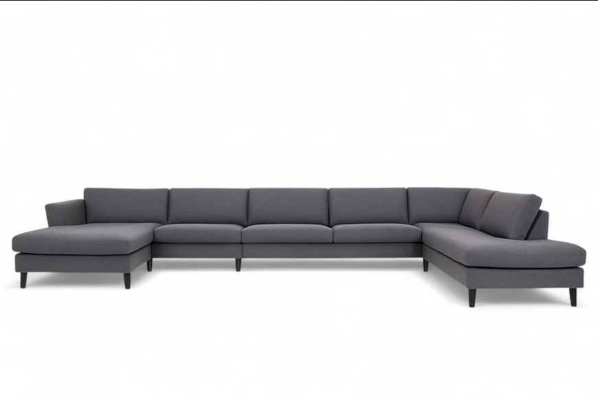 Elegant byggesystem. stor U-sofa. Fås i mange typer stof og læder, samt i flere størrelser.
