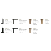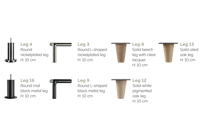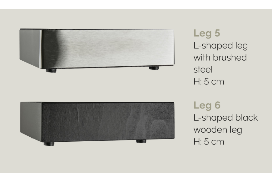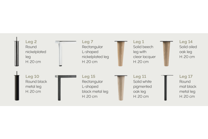 Der er 15 forskellige udtryk at vælge imellem til benene, og med højde enten i 5, 10 eller 20 cm.