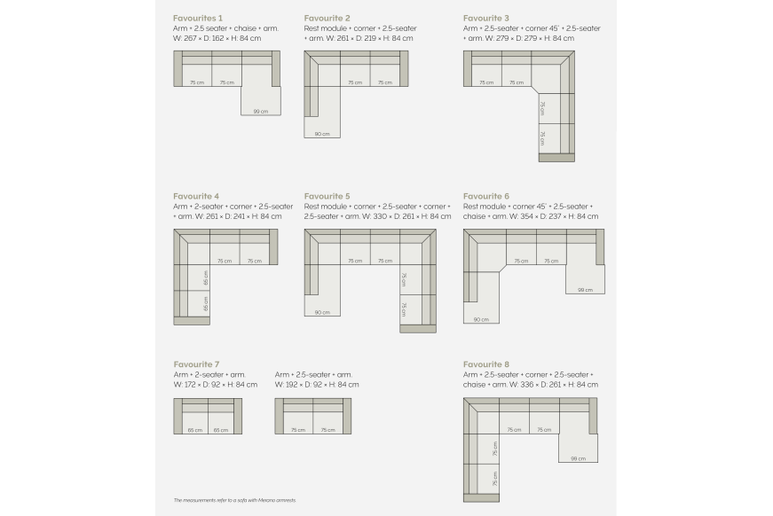 Vælg mellem enten et almindeligt hjørnemodul på 90 x 90 cm, eller et hjørnemodul med ekstra plads på 108 x 108 cm.