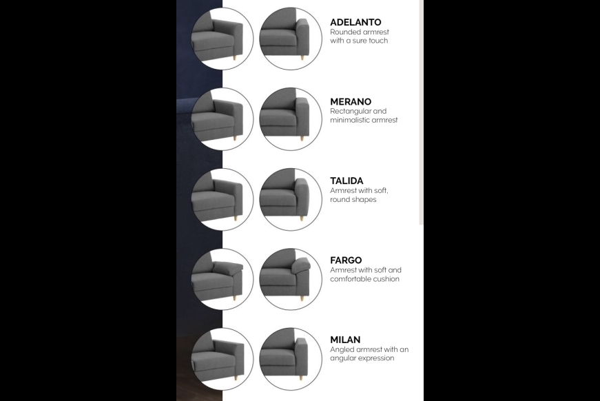 Klassisk afslutning med armlæn, som kan fås i 5 forskellige udtryk. Både de helt klassisk firkantede og mere moderne udtryk er mulige.