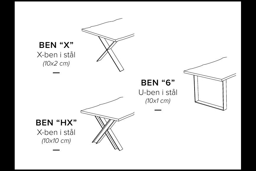 Ønskes bordet i en anden behandling er du velkommen til at kontakte butikken.
