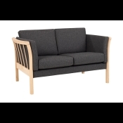 På billedet ses 2 pers. Dorte sofa, med gråt uldbetræk Misha 432-04 og med ubehandlet bøgetræs stel.