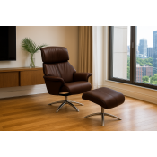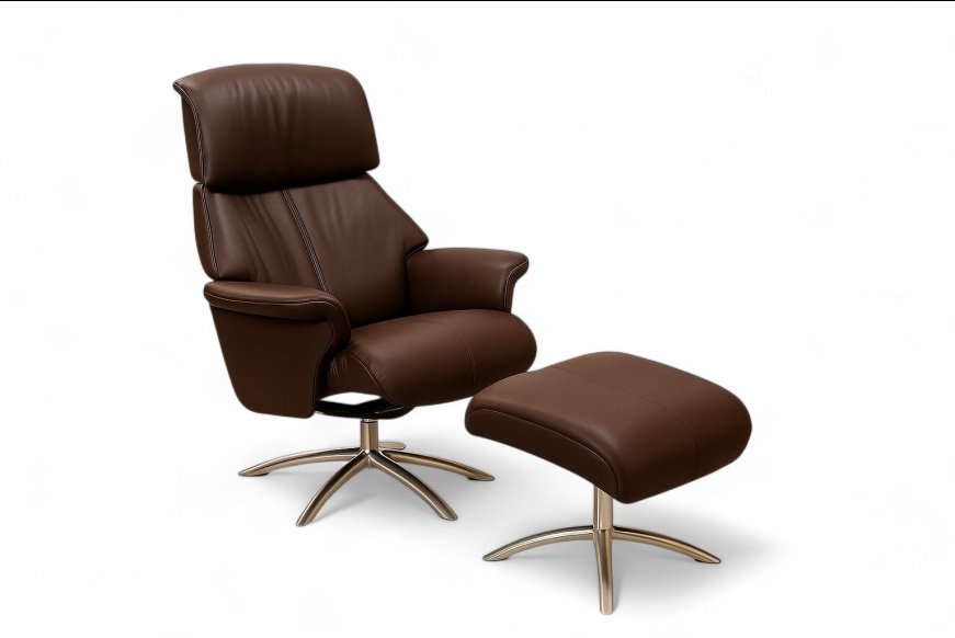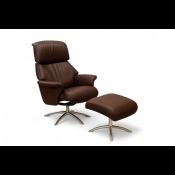 Info: Calibra høj lænestol med justerbar nakkeregulering og tilhørende fodskammel.