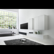 Mål: AV-moduler: B: 180 x H: 24 x D: 42 cm / Overskabe: B: 46 x H: 91 x D: 32 cm