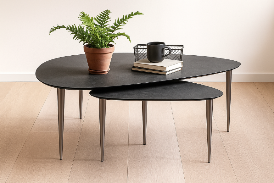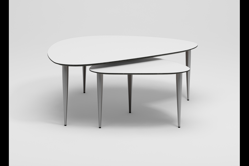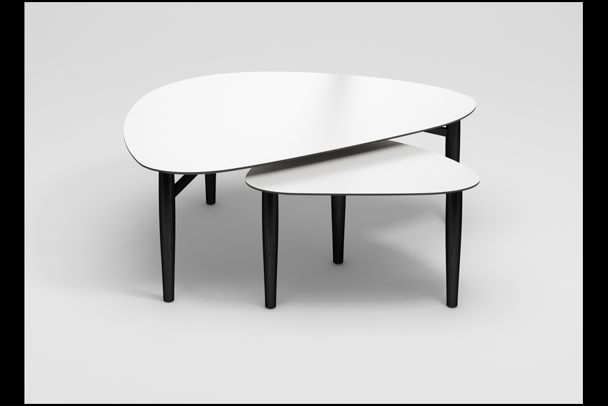 Design dit eget sofabord. Trekantede sofaborde. Højtrykslaminat.
