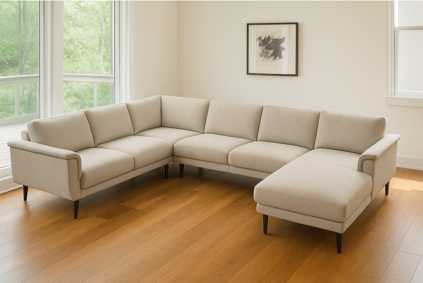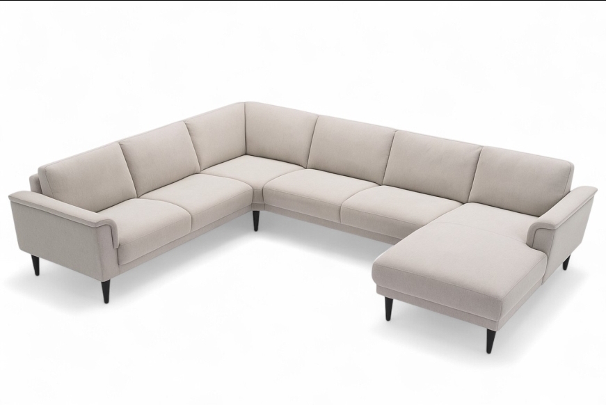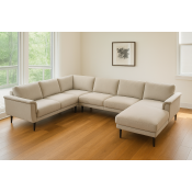 U-sofa med chaiselong / hjørnesofa. Fås også i læder.