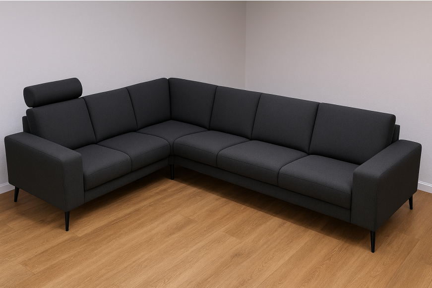 6 pers. hjørnesofa i stof. Fås også i læder.