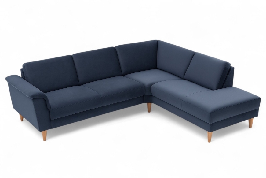 Openend / hjørnesofa, monteret med kraftig stof. Fås også i læder.